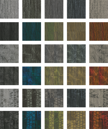 Counterculture is rooted in three distinctive patterns paired with rich color variation found in each carpet tile. Create visual flow and define spaces from saturated to subtle and back again with complete ease.